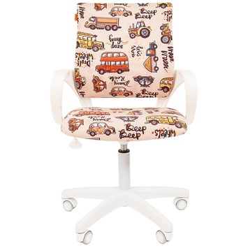 Детское компьютерное кресло, ткань велюр, принт автобусы, пластик белый